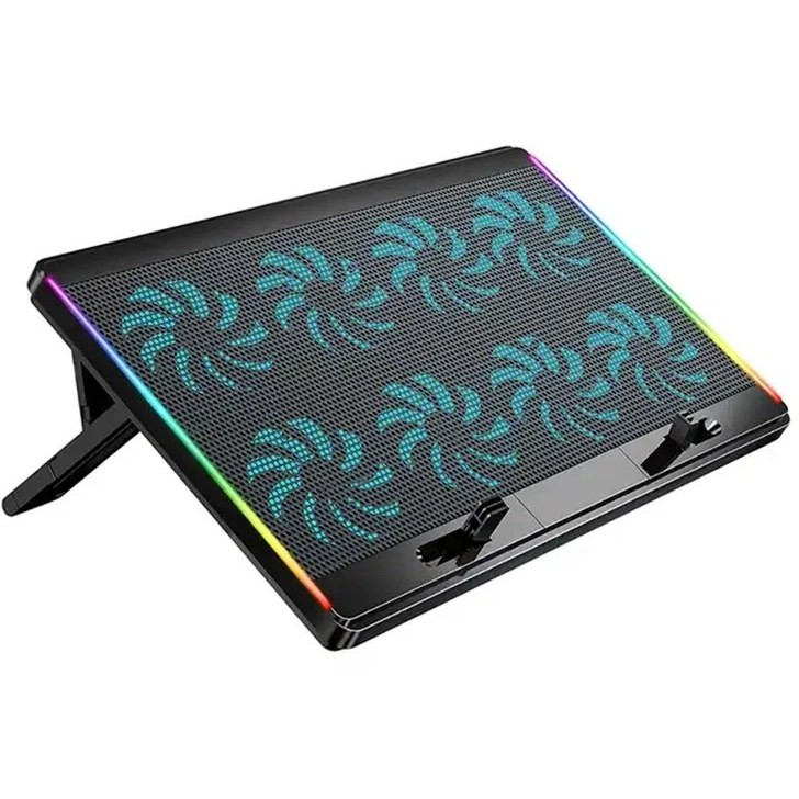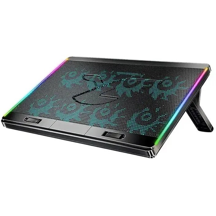 پایه خنک کننده لپ تاپ کول کلد مدل F4 به طور خاص برای لپتاپهای بزرگ تا 17 اینچ طراحی شده است که میتواند به طور موثر دمای لپتاپ را کاهش دهد و تجربه کاربری بهتری را ارائه دهد و خستگی گردن و کمر را تسکین دهد. این پایه از مش فلزی بادوام و مواد ABS با کیفیت بالا ساخته شده است. 8 فن 60 میلیمتری فوق العاده بیصدا داخلی، جریان هوای بهتری را فراهم میکنند و گرما را به سرعت از بین میبرند. همچنین حالت RGB محیط بازی و تجربه بهتری را برای لپتاپ شما فراهم می کند.این استند خنک کننده لپتاپ با خنک کردن لپتاپ شما، طول عمر آن را به حداکثر میرساند و عملکرد آن را افزایش میدهد. با ساختاری از پانل فلزی سوراخ دار بزرگ و 8 فن خنک کننده 60 میلیمتری، لپتاپ شما را به مقدار قابل توجهی خنک میکند.کول پد گیمینگ لپتاپ کول کلد مدل F4 با لپتاپهای 11، 11.3، 12، 13، 14، 15، 15.6 و 16 اینچ سازگار است. البته حتی اگر لپتاپ از لبههای پایه خنک کننده بیرون بزند، کاملاً پایدار میماند. پایه خنک کننده لپتاپ دارای دو پایه عقب برای شیب عالی و میله های جلویی برای نگه داشتن آن در جای خود است.پایه خنک کننده لپتاپ F4 از نظر طراحی و کیفیت مواد استفاده شده یک سطح بالاتر از هر پایه خنک کننده لپتاپ دیگری است. این پایه بادوام اما سبکی است که در هر شرایطی مناسب است و آن را به یک لوازم جانبی عالی برای لپتاپ شما تبدیل میکند. این پایه خنک کننده دارای دو پورت USB است تا یک پورت آزاد برای شما باقی بگذارد.
