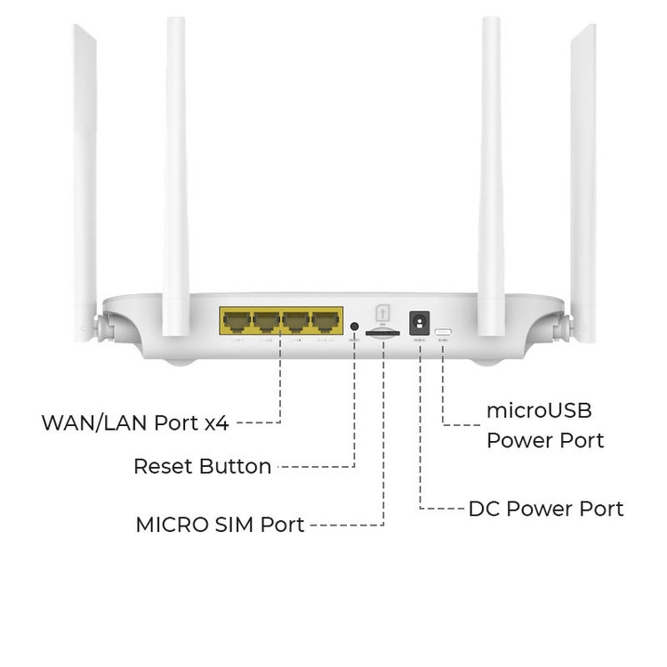 بهره گیری از 4 پورت RJ-45 WAN/LAN، درگاه سیم کارت با قابلیت پشتیبانی از SMS و اتصال بی سیم WiFi