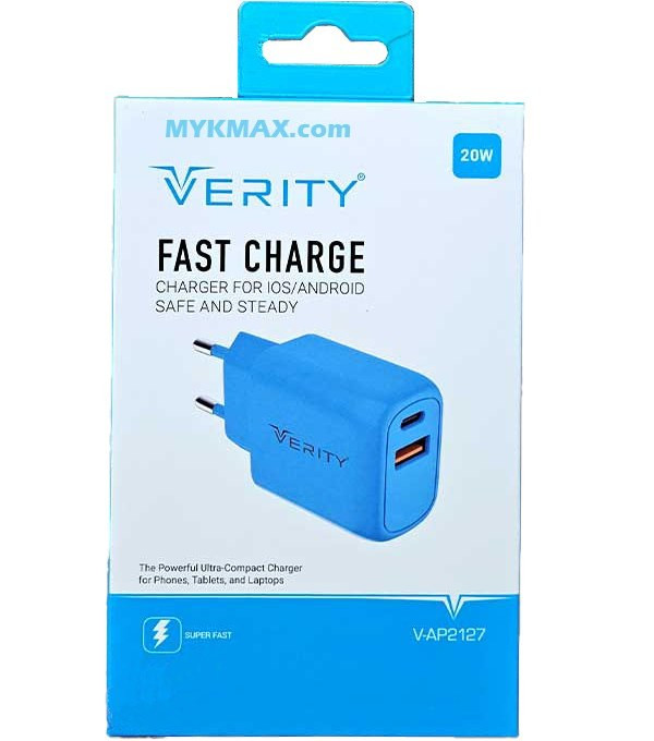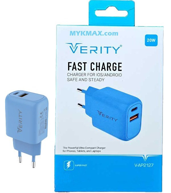 شارژر فست شارژ وریتی دارای کابل تایپ سی در بسته بندی مخصوص شارژ انواع موبایل و تبلت توجه : این محصول فقط در رنگ آبی روشن تولید شده است