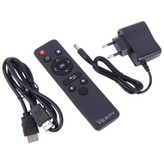 اقلام همراه شامل کابل تصویر HDMI، ریموت کنترل، باتری و آداپتور برق به منظور تامین انرژی، موفق به کسب گواهی استاندارد ایمنی و سلامت محصولات شامل CE / FCC / RoHS