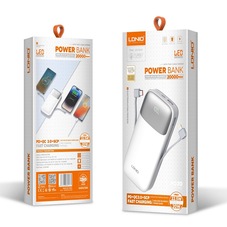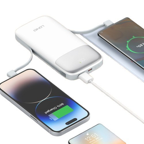 با داشتن دو کابل متصل به خود پاوربانک (لایتنینگ و تایپ-C)، این پاوربانک میتواند بدون نیاز به کابلهای اضافی، دستگاههای شما را به راحتی شارژ نماید.