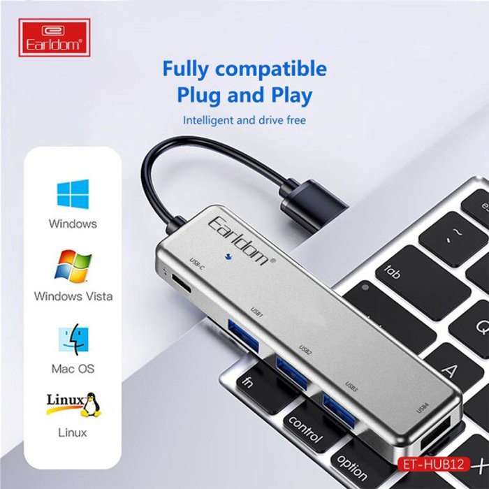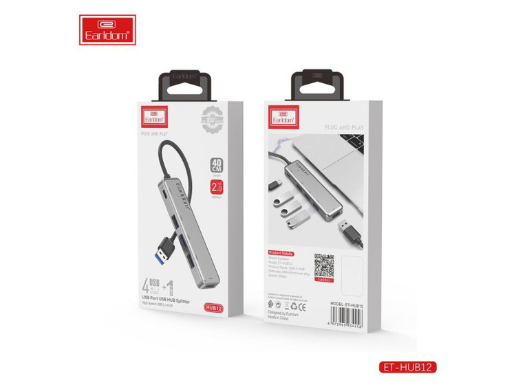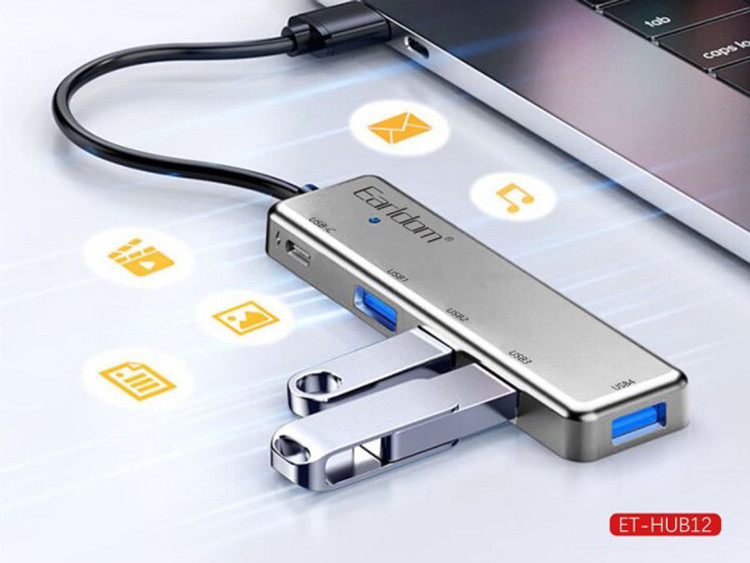 استفاده از هاب بهترین روش افزایش توانایی اتصال لپ تاپ و کامپیوترهای رومیزی است که از محدودیت تعداد درگاه در رنج هستند. این دستگاه در انواع مختلفی تولید و به بازار عرضه شده؛ اما چیزی که بین همه مشترک است توانایی افزایش دسترسی با توجه به اشغال یک پورت محدود ورودی از طریق افزایش تعداد آنهاست. هاب Earldom ET-HUB12 قادر است یک درگاه USB-A را به 4 درگاه یو اس بی نسخه 2.0 و یک درگاه USB-C ارتقاء دهد.