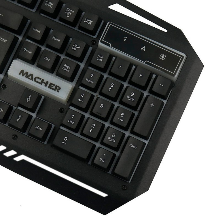 کیبورد RGB مچر مدل MR-370 دارای نور پس زمینه می باشد و در محیط های تاریک به راحتی می توانید از آن استفاده کنید. دکمه های کیبرد MACHER MR-370 سیلیکونی است و به طور ویژه ای تنظیم شده است. دکمه ها از نوع مکانیکی و دارای طول عمر 10 میلیون کلیک به ازای هر کلید می باشد. کیبرد های مکانیکی یا گیمینگ از لحاظ ساختار به گونه ای طراحی شده اند که بهترین تجربه بازی کردن را عرضه کنند. این کیبوردها علاوه بر انجام فرامین چند رسانه ای، توانایی انجام قابلیت های بهتری برای بازی کردن دارند. از جمله این قابلیت ها می توان به کلید های بلند و بزرگ برای راحت تر پیدا کردن کلید ها در بازی، داشتن نور پس زمینه در چندین رنگ اشاره کرد. با همه این ویژگی ها برترین تفاوت کیبورد های گیمینگ حساسیت بالا و دقت بالای کلید های آنها است. در کیبرد های مکانیکی نیازی نیست که لزوما کلید را تا انتها و گاهی محکم فشار دهید. عمل کلید به عنوان مثال در موقعیت 2 میلی متری انجام می شود و فشار دادن بیشتر، صرفا برای اطمینان از کارکرد کلید است. مزیت اصلی کیبوردهای مکانیکی، حساسیت بیشتر و دوام بالاتر آنها است.