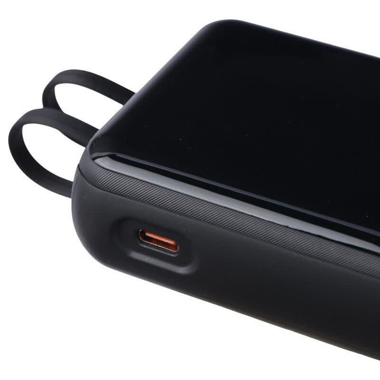 دارای 2 عدد کابل خروجی متصل به بدنه از نوع لایتنینگ و Type-C و1 عدد پورت تایپ سی (مشترک)