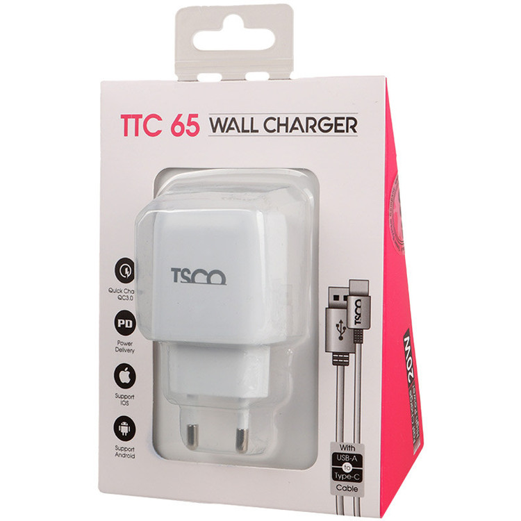کلگی فست شارژ تسکو TSCO مدل TTC 65 QC3.0 PD 3A + کابل تایپ سی