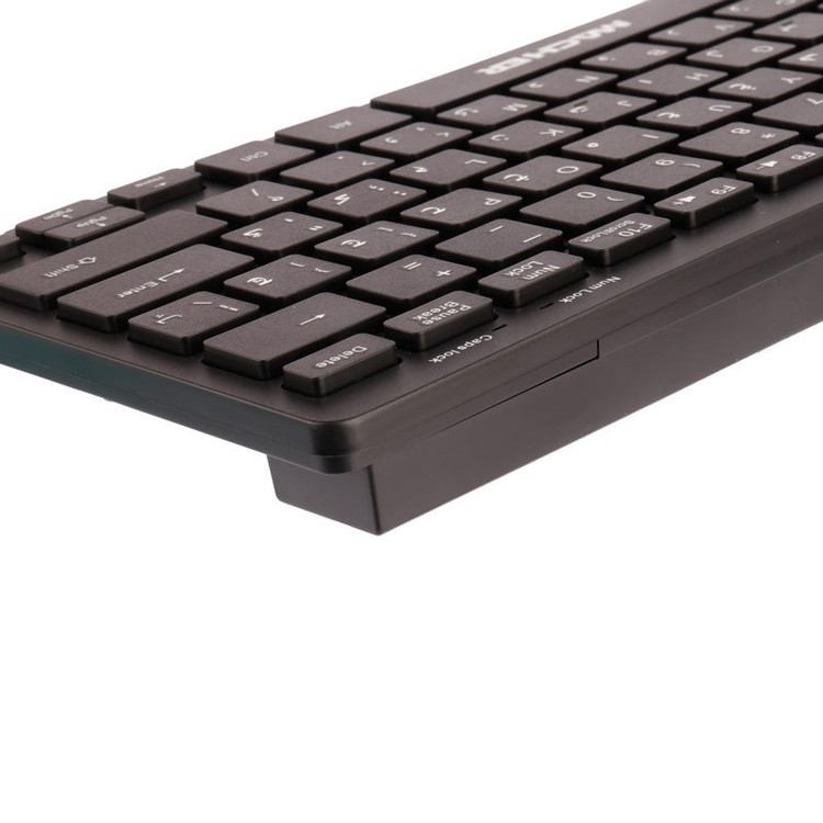 ● این مدل دارای 78 کلید کامل است که شامل کلیدهای مولتی مدیا و FN میشود. همچنین کلیدهای این کیبورد با حروف فارسی حکشده طراحی شدهاند که امکان تایپ روان و دقیق را برای کاربران فارسیزبان فراهم میکند.