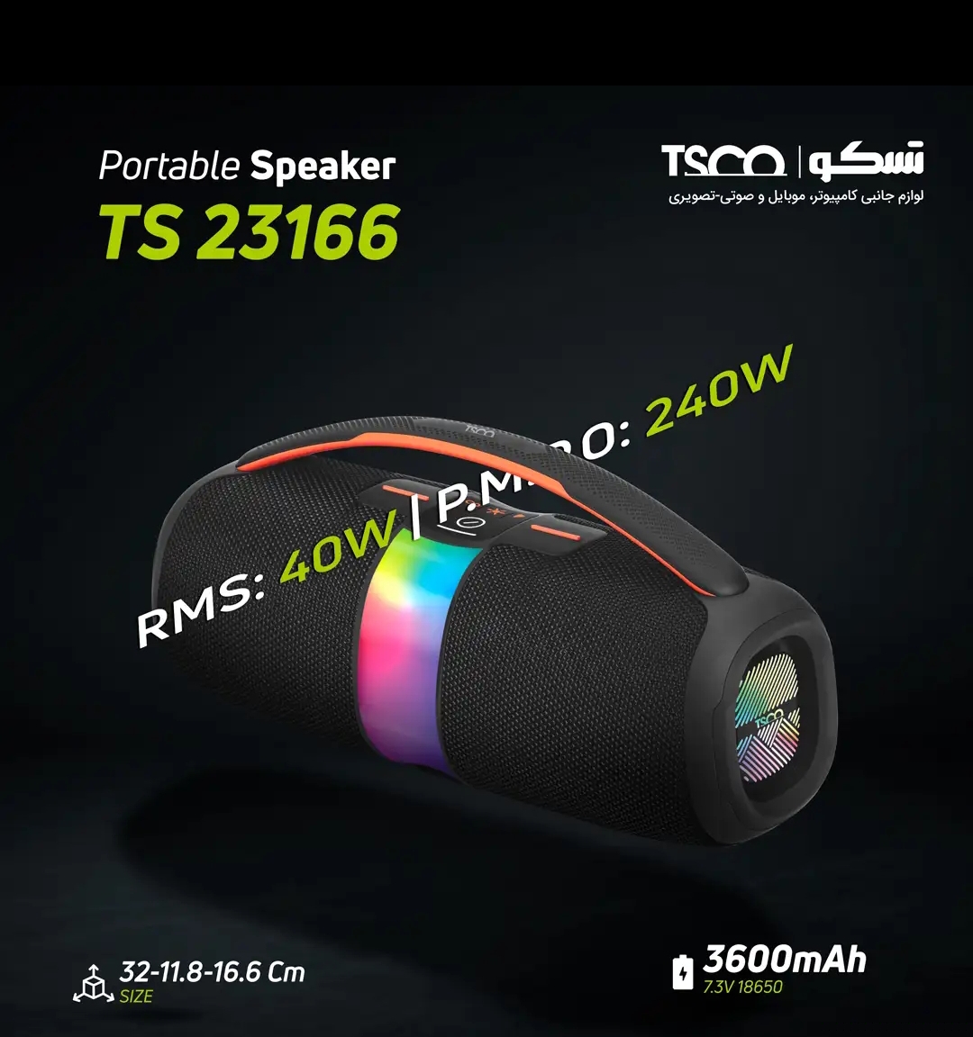 اگر به دنبال یک اسپیکر بلوتوثی قابل حمل با صدای شفاف، طراحی کاربردی و عملکرد پایدار هستید، اسپیکر TSCO مدل TS 23166 میتواند انتخابی عالی و اقتصادی برای شما باشد.