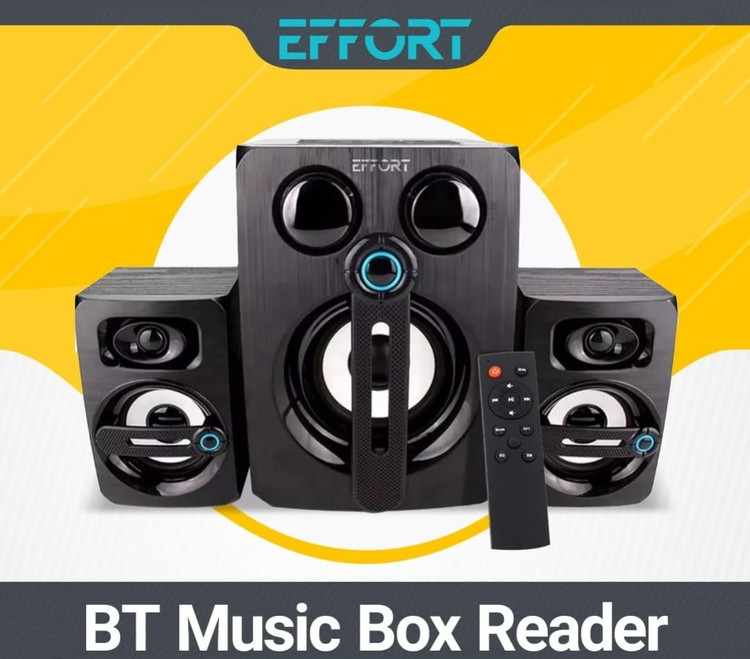 اسپیکر سه تکه ایفورت مدل EF-S3000BT یکی از تولیدات شرکت ایفورت است که دارای طراحی 3 تکه است. این اسپیکر یک پخش کننده خانگی 2.1 کاناله میباشد که شامل دو عدد باند چپ و راست و یک ساب ووفر با توان کلی 25 وات دارد. برای پخش موسیقی و آهنگ مورد علاقه و همچنین تماشای فیلم و یا حتی برنامه رادیو مورد علاقه خود میتوانید از طروق مختلف از جمله فناوری بلوتوث، ورودی USB (جهت اتصال فلش، هارد اکسترنال با فرمت MP3 )،شیار کارت حافظه SD و همچنین از طریق درگاه جک 3.5 میلیمتری صدا و اتصال کابل AUX به این اسپیکر متصل شوید. این اسپیکر خانگی فعال مناسب برای اتصال به انواع تلویزیون و گوشی های نسل جدید، کامپیوتر، لپ تاپ، DVD و MP3 پلیرها میباشد؛ و با تولید صدای با کیفیت و جلوه های صوتی واقع بینانه از تماشای فیلم، موسیقی و برنامه های تلویزیونی مورد علاقه خود لذت ببرید. این ست با طراحی زیبا و چشم نواز میتواند زیبایی فوقالعاده ای را به دکوراسیون منزل شما بدهد. منبع تغذیه این اسپیکر 3تکه از برق شهر با ولتاژ 220 ولت تامین میشود. از اقلام همراه این اسپیکر3 تیکه یک ریموت کنترل جهت مدیریت صدا و کنترل کردن موسیقی از راه دور که به این بدان معنی است که اکنون دیگر لازم نیست مکالمه یا کارهای خود را متوقف کنید و میتوانید با فشار دادن یک دکمه موسیقی خود را با کنترل از راه دور کنترل کنید.