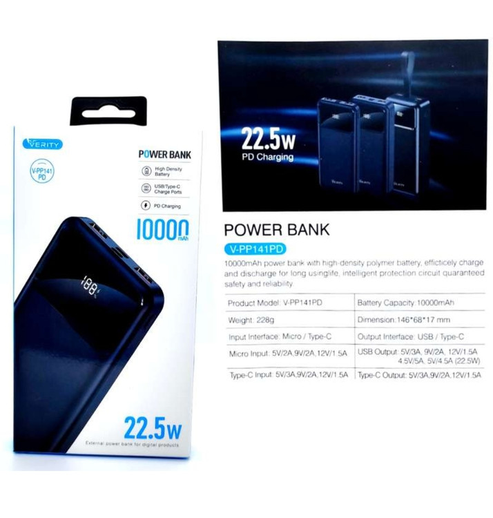 دارای 2 درگاه ورودی (MicroUSB, Type-C) و 3 درگاه خروجی (Type-C ،USB)