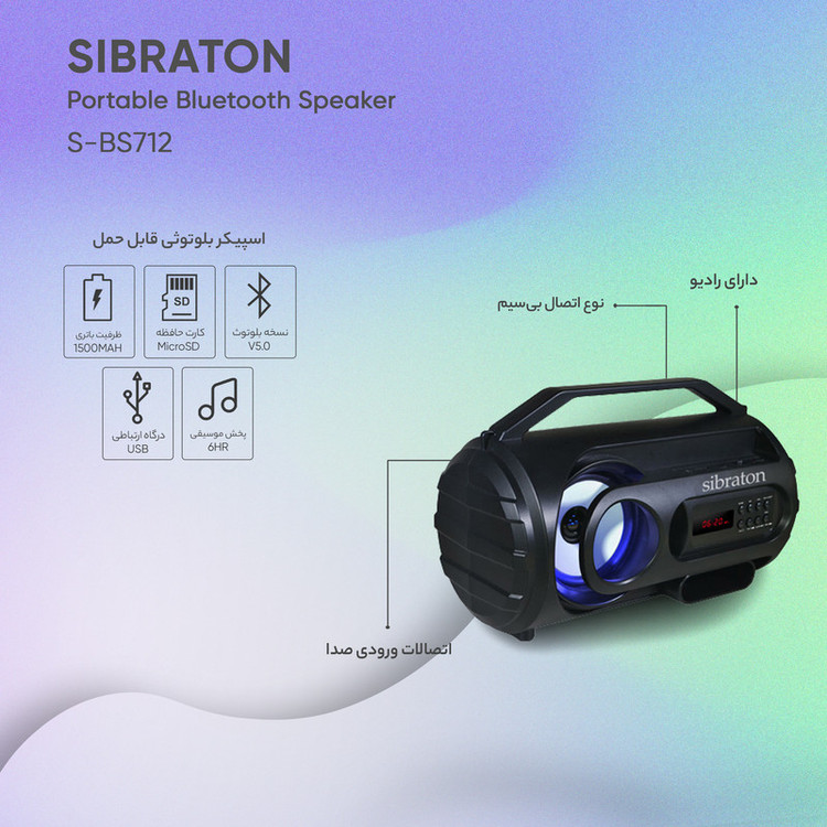 مشخصات اسپیکر بلوتوثی قابل حمل سیبراتون مدل S-BS712