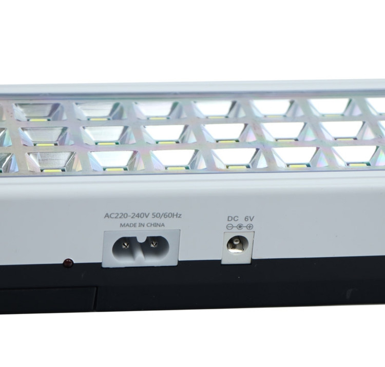 راغ مذکور نیازمند شارژ اولیه بوده و از روشن کردن چراغ، همزمان با شارژ کردن آن خودداری نمایید.مجهز به ۳۰ لامپ LED از نوع SMD با شارژدهی بالا، دو نوع نوردهی با نور کم و زیادمنبع تغذیه AC و DC، شارژ از طریق AC با کابل برق شهری، قابلیت شارژ با پنل خورشیدی از طریق درگاه DC 6Vباتری از نوع Lead-Acid با ظرفیت ۱۰۰۰ میلی آمپر ساعت با دوام بالا و نگهداری شارژ برای شرایط اضطراریمجهز به دسته برای حمل آسان و آویز پشت بدنه چراغ برای نصب روی دیوار و سطوح دیگر