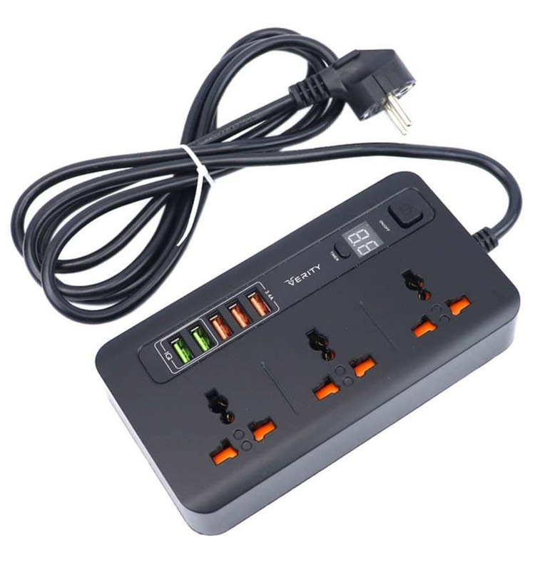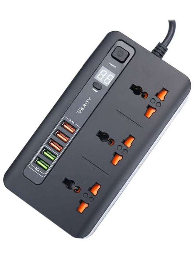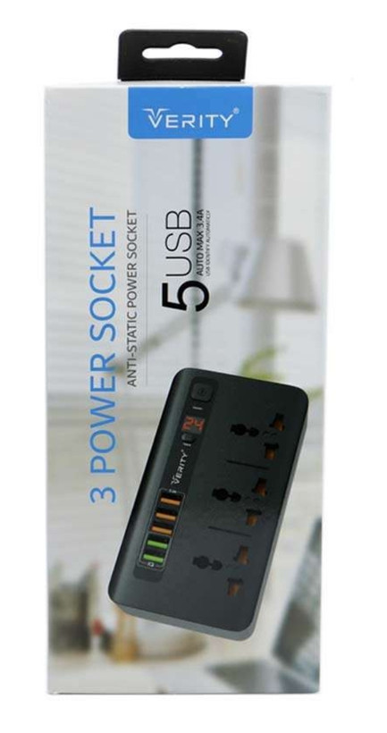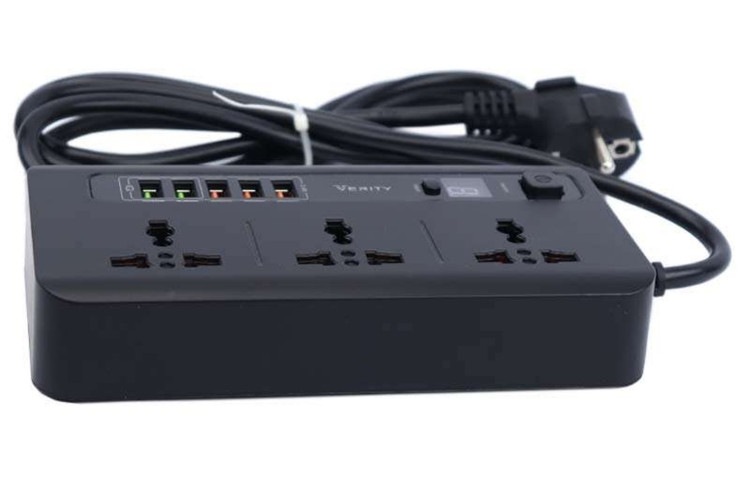 سه راهی برق وریتی PS 3111 علاوه بر برخورداری از سه عدد پریز برق از ۵ خروجی USB هم برخوردار است.