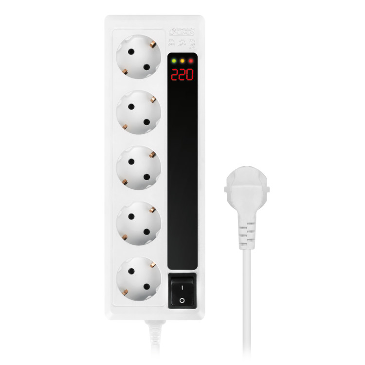 محافظ و چند راهی برق مدل GREEN Line GLP105D با نمایشگر دیجیتال و تاخیر زمانی 45 ثانیه ای راهکاری استاندارد برای محافظ از وسایل الکتریکی منزل شما. چند راهی(5 راهی) گرین لاین به واسطه بهره گیری از متریال اولیه خوب یک راهکار باکیفیت و مثال زدنی و همچنین یک انتخاب استاندارد برای اتصال 5 دستگاه به برق منزل یا محل کار به حساب می آید. همچنین GLP105D مناسب برای اتصال لوازم برقی همچون کامپیوتر، سیستم های صوتی و تصویری و تجهیزات حساس به سطح استاندارد ولتاژ به شمار میرود.