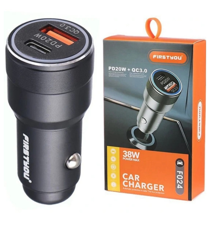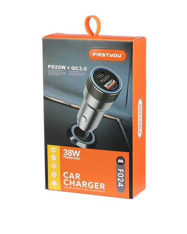 شارژر فندکی فست شارژ Firstyou F024 QC3.0 PD 3A 20W