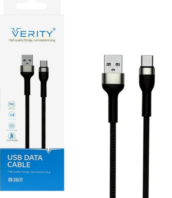 کابل دیتا و شارژ Type-C VERITY مدل 3157 مشکی