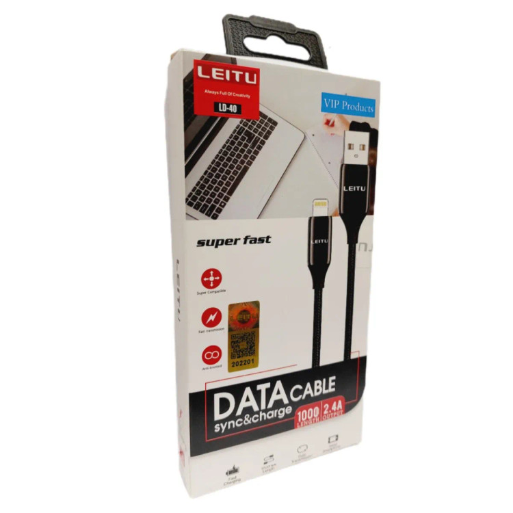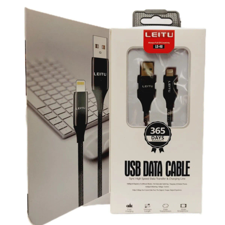 لیتو یکی از بزرگترین شرکت های تولید کننده لوازم جانبی موبایل مثل هدفون و هندزفری و کابل شارژ و... می باشد که در تنوع بسیار زیاد محصولات خود را روانه بازار کرده است. این کابل شارژ آیفون لیتو با نام تجاری LD-40 روانه بازار شده است که یک سمت آن USB و سمت دیگر آن LIGHTENING میباشد و بصورت فست شارژ با حداکثر جریان 2.4 آمپر با ایمنی بالا موبایل شما را شارژ می کند. از طرفی این کابل قابلیت انتقال دیتا (اطلاعات) را دارد و می توانید اطلاعات خود در گوشی مثل فیلم و عکس را در لپتاپ یا کامپیوتر خود جا به جا کنید