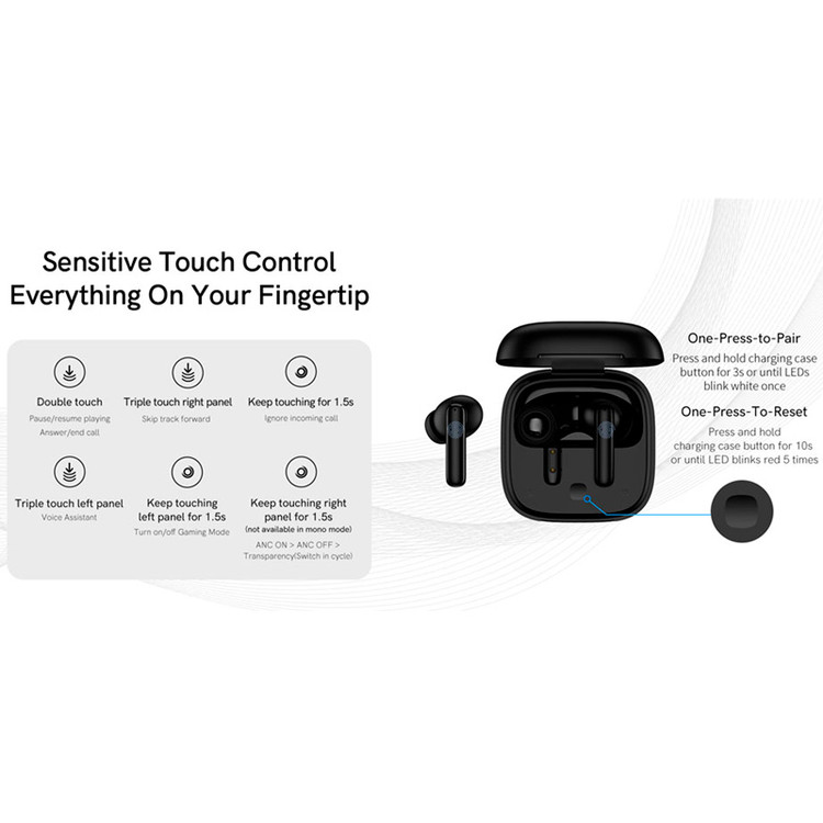 میزان شارژدهیدر حالت پخش موسیقی و روشن بودن حالت ANC تقریبا ۵٫۵ ساعت و قابل افزایش تا حدود ۲۴٫۷۵ ساعت با همراهی کیس شارژ در حالت پخش موسیقی و خاموش بودن حالت ANC تقریبا ۷ ساعت و قابل افزایش تا حدود ۳۰ ساعت با همراهی کیس شارژ
