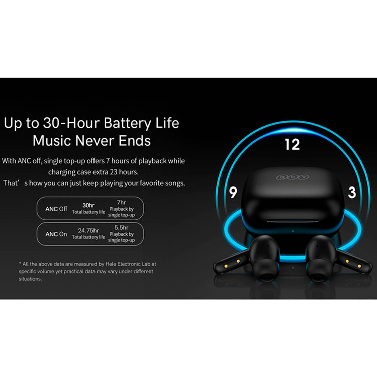 میزان شارژدهی گوشی ها در حالت خاموش بودن حالت ANC و پخش موسیقی تقریبا ۷ ساعت و قابل افزایش تا حدود ۳۰ ساعت با همراهی کیس شارژ