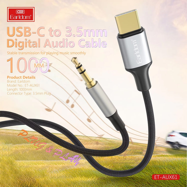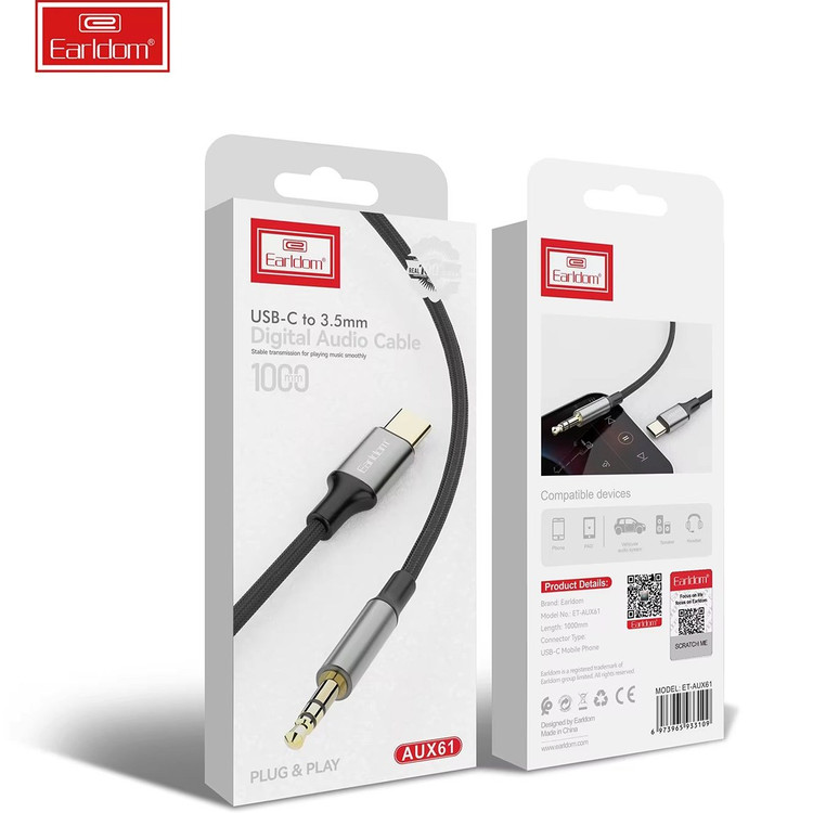 مبدل و تبدیل صوتی Type-C به جک 3.5 میلیمتری صدا ارلدام مدل AUX61 یک ابزاری کاربردی برای گوشی موبایل هایی است که فاقد AUX می باشند. این محصول توسط برند ارلدام تولید شده است. طول این تبدیل 100 سانتیمتر یا 1 متر است که از ترکیب آلومینیوم در سوکت ها و ترموپلاستیک (TPE) در روکش کابل ها استفاده شده است. ترموپلاستیک یک ماده سازگار با محیط زیست است به علاوه از مقاومت خوبی در برابر کشیدگی و ضربه فیزیکی دارد، به همین منظور این مبدل از دوام و طول عمر بسیار خوبی برخودار است.